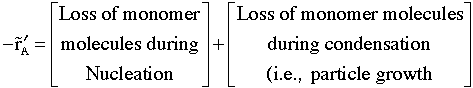 We now focus on the rate of disappearance of monomer molecules. We lose the monomer molecules by two mechanisms: Nucleation to form particles and by condensation of monomer molecules on the newly formed particles.
