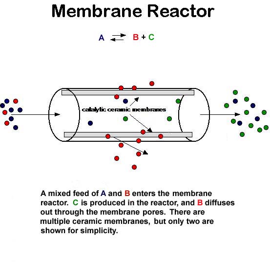 Membrane reactors combine reaction with separation to increase conversion. One of the products of a given reaction is removed from the reactor through the membrane, forcing the equilibrium of the reaction "to the right" (according to Le Chatelier's Principle), so that more of that product is produced.