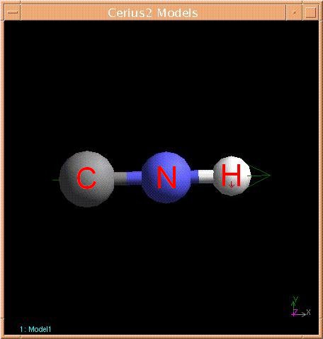 11. Left click and hold on the clean button in the lower left of the sketch window until the CNH molecule stops moving, indicating that the program has roughly minimized the molecules energy. Your CNH molecule should look something like this: