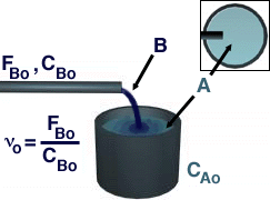 We now have all the equations needed to describe the changes in concentration of the different species in the reactor over time. However, since there is a feed stream, the volume in the reactor will change. So, we need to develop an equation describing how the volume in the reactor changes with time.