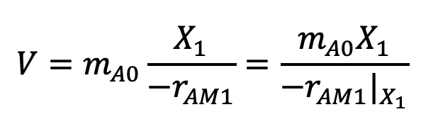 If we assume the reactor volume and the mass flow rate are the same and the stomach operates as a PFR, we would obtain less conversion than the case of the CSTR, this is seen below.