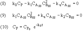 The initial conditions are that when t = 0 then: CP = CP0 and CA0 = CB0 = 0