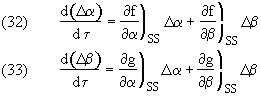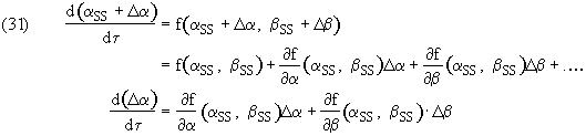 We will now substitute for a and b and expand f(a,b) and g(a,b) in a Taylor series around the Pseudo Steady State values ass and bss.