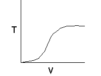 Let's calculate the volume necessary to achieve a conversion, X, in a PFR for a first-order, exothermic reaction carried out adiabatically. For an adiabatic, exothermic reaction the temperature profile might look something like this:
