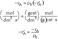 The reaction rate per unit volume and the reaction rate per unit catalyst weight are also related by the bulk density, rb