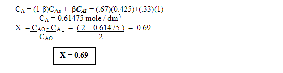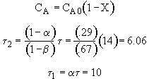 (b) What is the overall conversion for the second order reaction with CA0 = 2 mol/dm3 and k1 CA0 = 0.1 min–1?