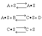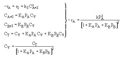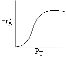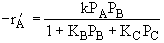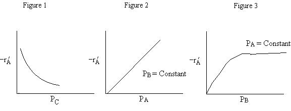A is not on the surface or if it is KAPA << 1. B is on the surface and we see as we increase PB, the rate reaches a plateau. The curves from A, B, and C partial pressure suggest a rate law of the for |