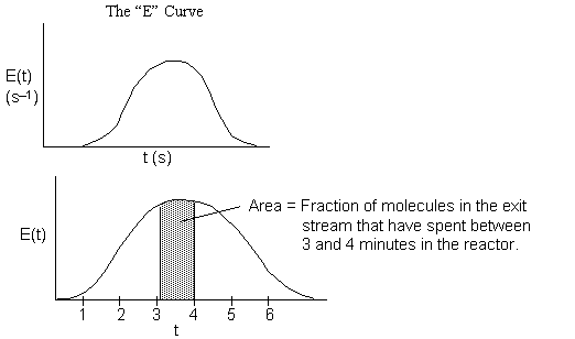 = Fraction of molecules exiting the reactor that have spent a time between (t) and