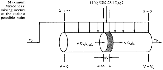 Modeling maximum mixedness as a plug flow reactor with side entrances.