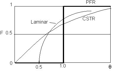 On the figure below sketch the F curve for each of the following ideal reactors assuming they all have the same space time.