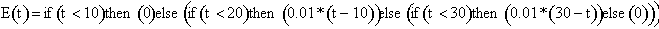 E(t) = 0.01 (30–t) for 20 < t < 30