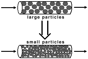 If the particle size is decreased, the pressure drop becomes an important factor. If the pressure drop is modeled by the equation: