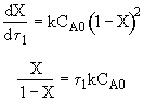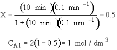(b) What is the overall conversion for the second order reaction with CA0 = 2 mol/dm3 and k1 CA0 = 0.1 min–1?