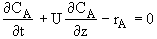 Let’s see what functional forms the transformation suggests for the above equation describing reaction and decay in a packed bed.