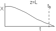 As time continues, the activity front moves on down the reactor and eventually breaks through the end of the reactor at time called the break through time tb. The figure below shows the activity profile down the reactor as a function of time. The activity profile shown is relatively steep, but the steepness will be a function of the reaction rate and the flow rate.