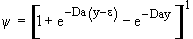 (Note: at ε = 0 and θ = 0, ∴ y = 0 and ψ = 1) (7)