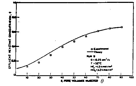 (a) or (b) depending on the rate of reaction and the Damköhler number. We note that same phenomena occurs in similar systems such as the leaching of uranium, the acidization of petroleum wells, and in chromatographic reactors.