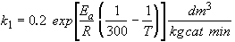 k1 =0.2 dm3/(kg cat · min) at 300 K Ea/R = 500 K