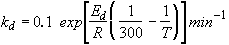 kd = 0.1 min-1 at 300 K Ed/R = 2,000 K