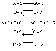 2. Species B is on the surface because in 1 we showed that the reaction is irreversible, therefore the only way the rate could decrease were if were in the denominator of the rate law. If a species is in the denominator of the rate law it’s on the surface. (TRUE) |
