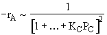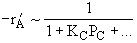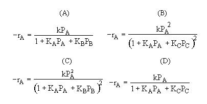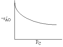 If the reaction is reversible the increase in PC will decrease the rate. If C is on the surface it will be in the denomination of the rate law and thus increasing PC will decrease the rate. Ans: C |