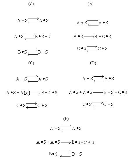 From the rate law we know species B and C are adsorbed on the surface. From the data you can’t tell whether or not C is adsorbed on the surface. |