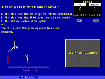 The module can also be run in an interactive mode, in which the scenario takes the student to a basketball tournament. They have the choice of two-point and three-point questions: