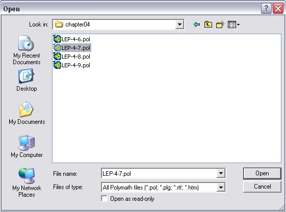 After you open Polymath™ 6.1, select the "open" icon on the toolbar.