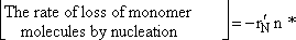 We now focus on the rate of disappearance of monomer molecules. We lose the monomer molecules by two mechanisms: Nucleation to form particles and by condensation of monomer molecules on the newly formed particles.