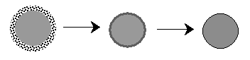 The newly formed nuclei can grow in size as a result of monomers hitting the particles and sticking, causing the particles to increase in size.
