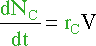 We now have all the equations needed to describe the changes in concentration of the different species in the reactor over time. However, since there is a feed stream, the volume in the reactor will change. So, we need to develop an equation describing how the volume in the reactor changes with time.