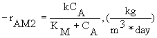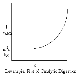 Where k is the specific reaction rate, which includes the total enzyme concentration, and KM is the Michealis-Menten constant. This process is referred to as a enzyme catalytized digestion. This rate law can be expressed in terms of conversion and then used to arrive at the following figure: