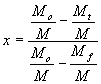 If we divide the top and bottom of the above fraction by the total mass of starch present, M, we get:
