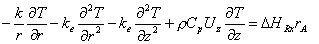 Adding a cooling jacket to the reactor also means adding radial energy effects, and the energy balance will no longer take on a one-dimensional form. The radial temperature effects will affect the rate of reaction and thereby result in radial concentration gradients. Consequently the problem is shifted into a two-dimensional problem. The equations used to solve this problem thereby take these forms of the general equations derived above.