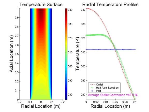 The thermal conductivity of the reaction mixture affects the heat transport through that mixture. Using the same set of equations as before, i.e. using a tubular reactor with a cooling jacket where the flow is laminar, can you place the following graphs in order of increasing thermal conductivity?