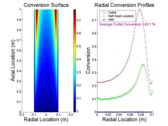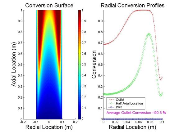 Varying the total flow rate will affect the conversion profile and the average outlet conversion. Using the same set of equations as before, i.e. using a tubular reactor with a cooling jacket where the flow is laminar, can you place the following graphs in order of increasing flow rate?