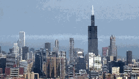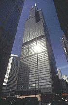 The Sears Tower is the world's second tallest building. On a clear day, standing at the top, you can see 50 miles and four states (Michigan, Wisconsin, Illinois, and Indiana).