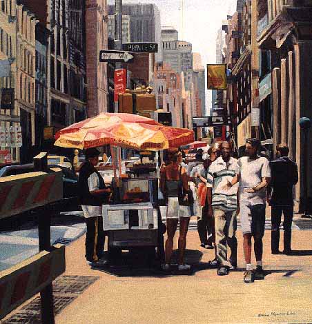 The Wake similarly tells a story in which familiar faces experience religious and mystical transformations. On her way back from the funeral home, Jill wanders into an alien neighborhood and loses command of her surroundings. She eventually sees the familiar sight of the neighborhood street vendor, and desperately goes to him in search of refuge from the gang of kids accosting her. Her faith and trust in him is absolute as she conceals herself in the rising steam of hot tamales and heated buns. In this scene, the Hot-Tamale man and his recognizable cart become Jill's only protection, her savior.