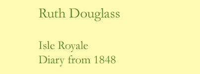 The original diary of Ruth Douglass was recently transcribed and annotated by Robert L. Root, Jr., a professor at Central Michigan University. The diary shows a year in the life of Ruth Douglass, a 23 year old who had recently married Columbus C. Douglass, a geological explorer. I have chosen to focus on the months Ruth and her husband spent on Isle Royale. He had been hired to supervise a copper mining operation on the island. Ruth Douglass died two years after completing this diary due to complications during childbirth. There are no photographs of Ruth available. The following entries are as they appeared in the diaries, no changes have been made. |