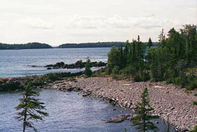 September 8, 1848 Our boat strolled about the island for some time at length we found berries of different varieties, Whortleberries, mulberries, wildpears and cherries and a few red Raspberries, clambered up some very high pretty stones. In attempting to step from one point of rock to another my foot slipped and I fell into the water, this was my first bath in Lake Superior. October 4, 1848 The weather being pleasant and the waters of the Bay so quiet that Mrs. Mathews and myself ventured out in a boat alone with a half breed woman, she managed the boat just as well as a man. |