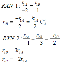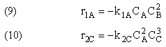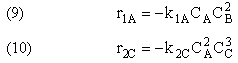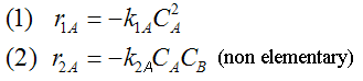 | (1) | A + 2B → C | -r1A = k1ACACB2 |