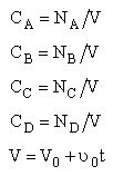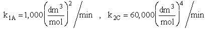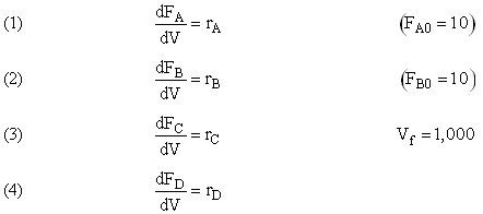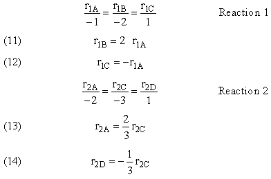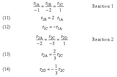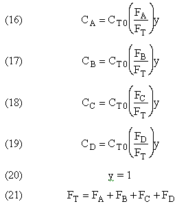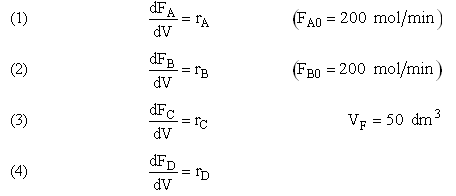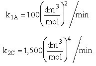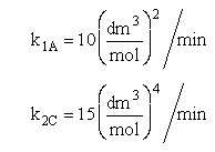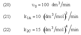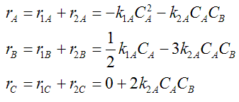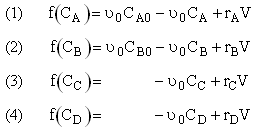 | (2) | 2A + 3C → D | -r2C = k2CCA2CB3 |