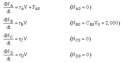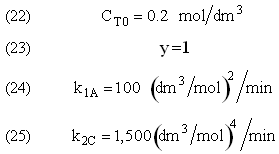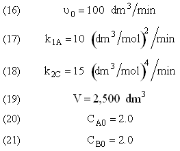 for Example B: Multiple Reactions, CSTR, Liquid Phase