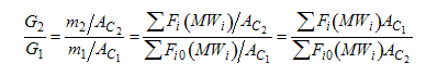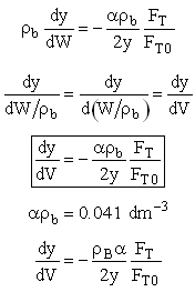 and hence G. To account for this decrease in calculating our pressure drop parameter , we will take the ratio of the superficial mass velocity at any point in the reactor to the superficial mass velocity at the entrance to the reactor. The superficial mass flow rates can be obtained by multiplying the species molar flow rates, Fi, by their respective molecular weights, MWi, and then summing over all species
