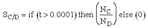 If one were to write SC/D = FC/FD in the Polymath program, Polymath would not execute because at V = 0, FC = 0 resulting in an undefined volume (infinity) at V = 0. To get around this problem we start the calculation 10-4 dm3 from the reactor entrance where FD will note be zero and use the following IF statement.