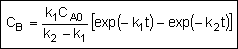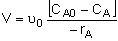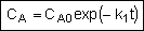 | Integrating with CA=CA0 at t=0 and then rearranging |