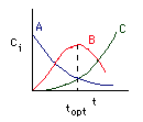 When should you stop the reaction to obtain the maximum amount of B? Let's see. |