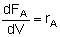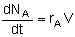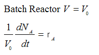 Species A:Combined mole balance and rate law for a control volume batch reactor. |