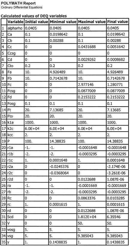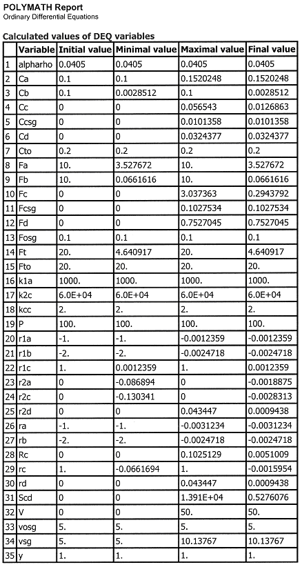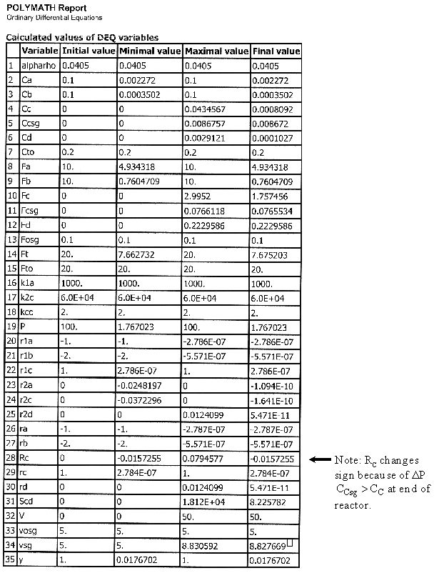 Case 1 Large sweep gas velocities CCsg = 0