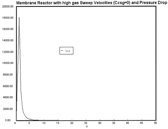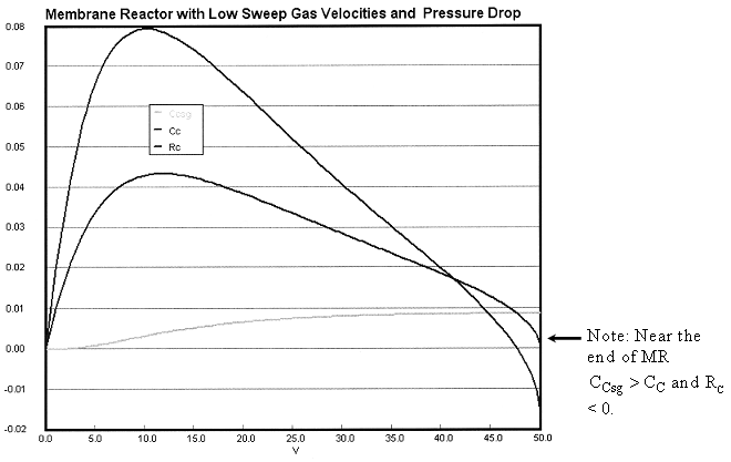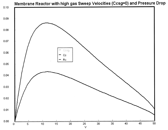 We see that when there is no pressure drop CC is always grater than CCsg and species C does not diffuse back into the reactor.
